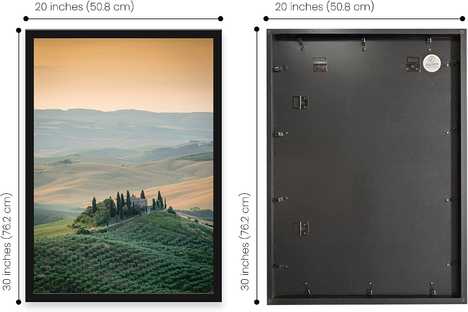 With the 20x30" frame, you can effortlessly create a sophisticated and visually appealing display that captures attention and adds a touch of artistry to your interior spaces. Whether hung on the wall or placed on a tabletop, this frame will elevate the aesthetic appeal of any room while preserving your memories with style and elegance.