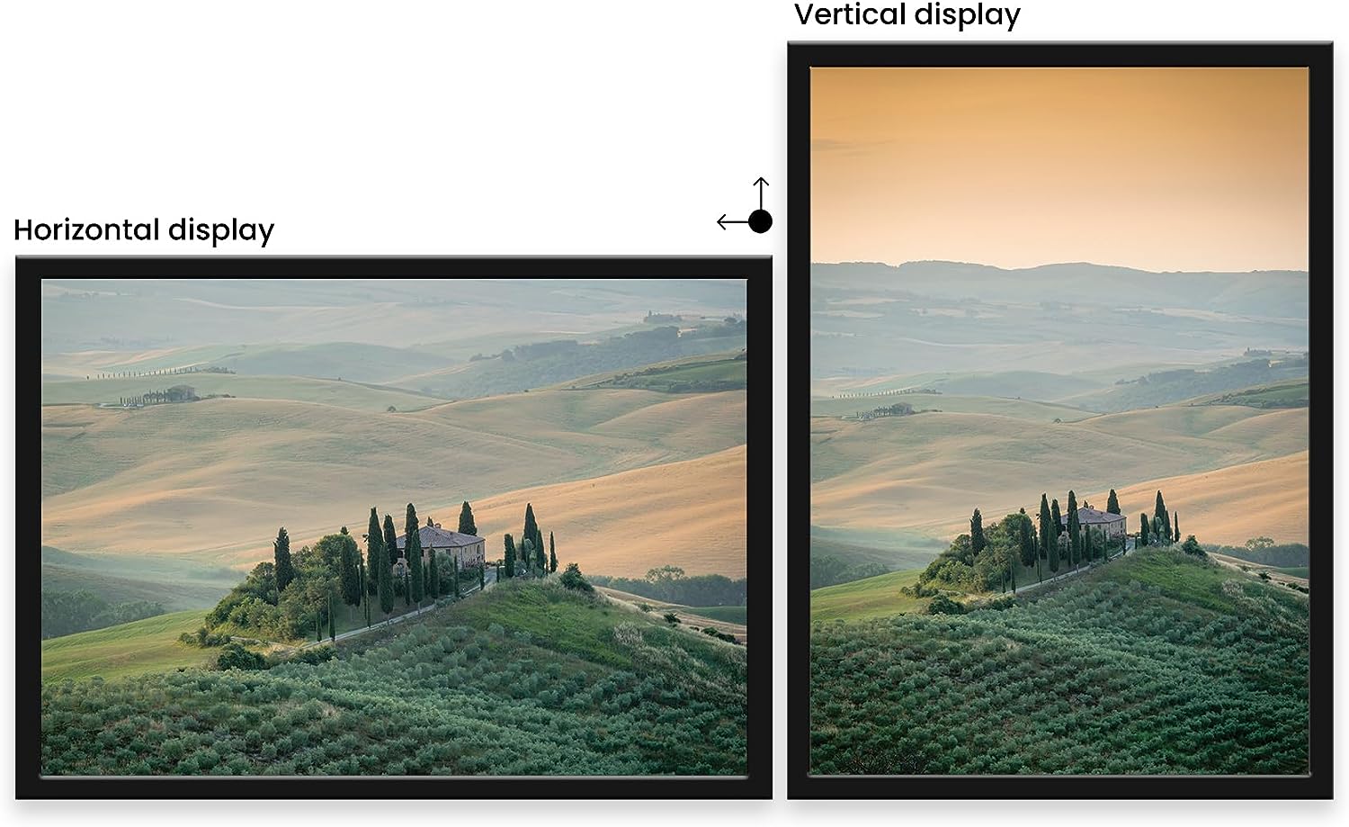 - Horizontal and vertical wall hanging options for portrait and landscape orientation