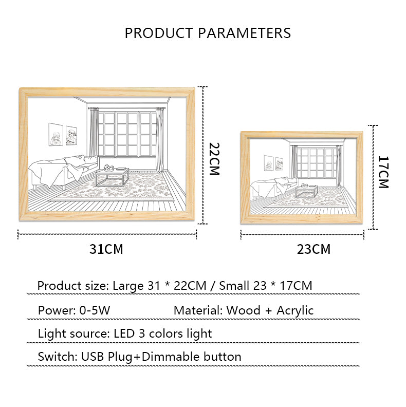 - Light and Shadow: Light Up Picture Frame gives you two different space scenes with a button switch. It makes a "deep thinking space" with acrylic as the medium. Turn on the light and see the beauty of light and shadow.